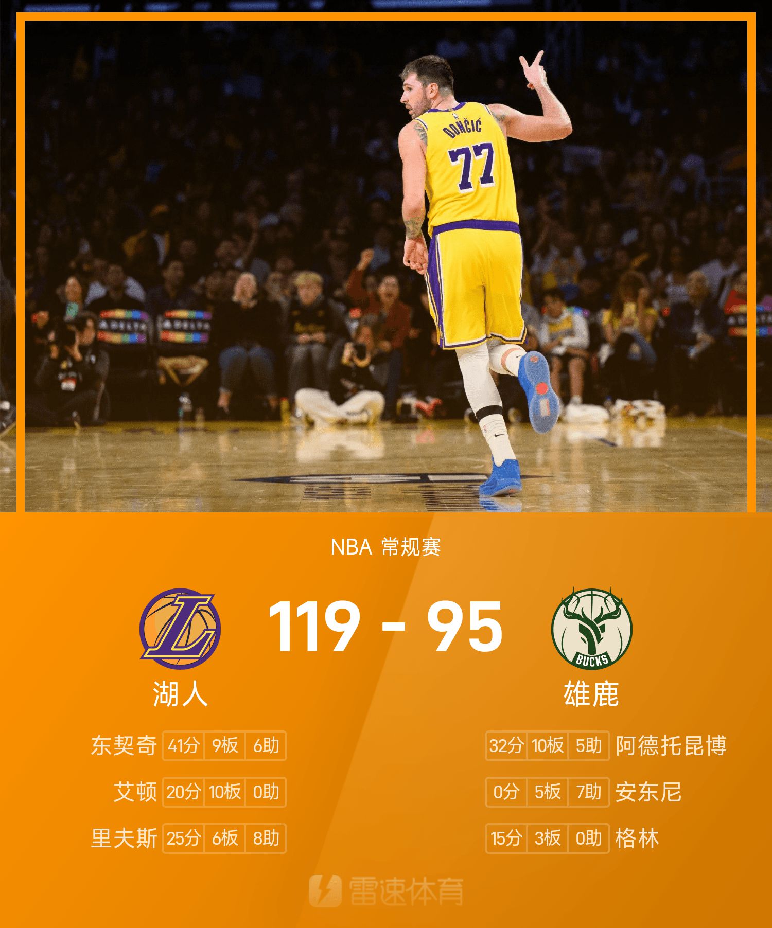 湖人119-95雄鹿