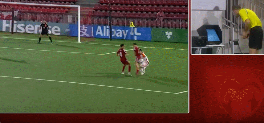 25’阿季奇遭遇毛罗拦防摔倒在三秒区,主裁判判观赏视频裁判后取消十二码