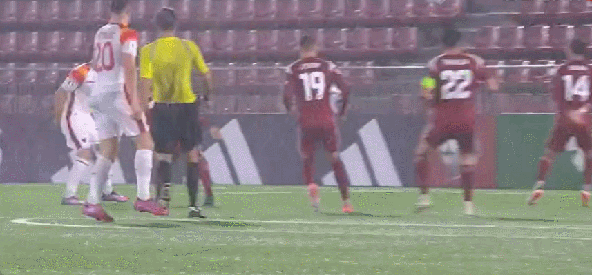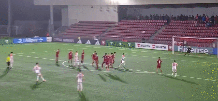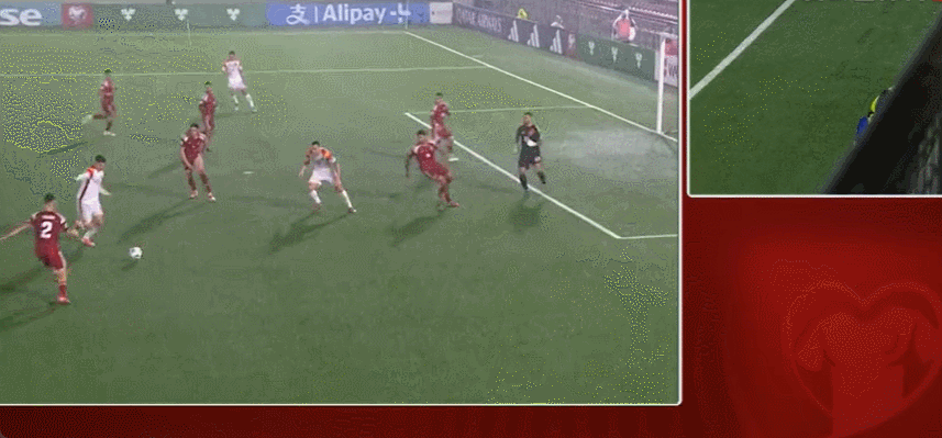 45+4’阿季奇主罚自由球起右脚轰门,皮球高出横梁飞出端线