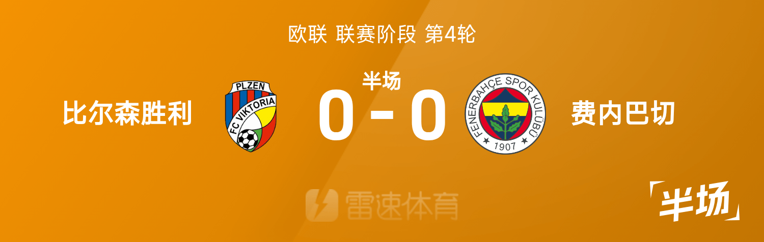 6686体育11月07日讯 25/26赛季欧联联赛事阶段第4轮,比尔森胜出局迎战费内巴切。半场战罢,双方赛果分暂为比尔森胜出局0-0费内巴切。