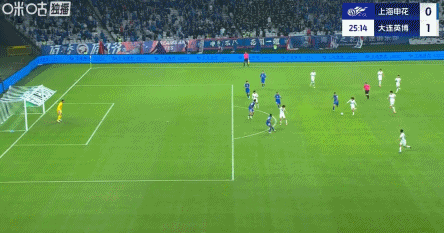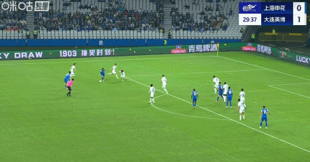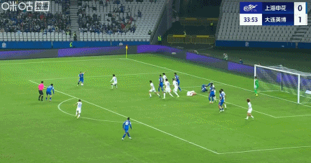 83’申花右路传禁区,徐皓阳后点侧身抽射打飞