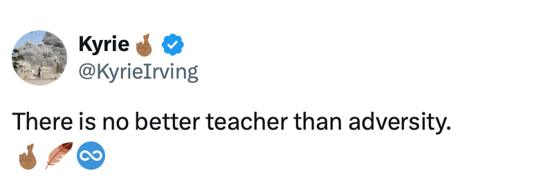 独行侠当家球星欧文更新社媒写道:“逆境是最好的老师。”
